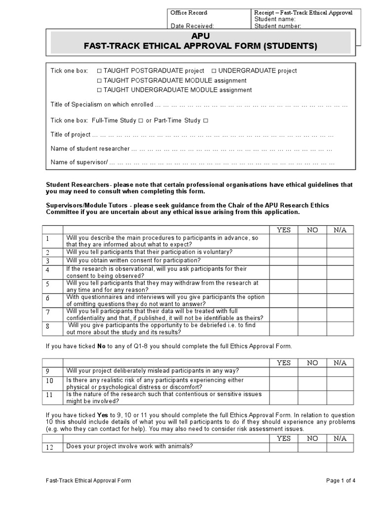 3 0 1 Fast Track Ethical Approval Form New Pdf Postgraduate Education Social Institutions